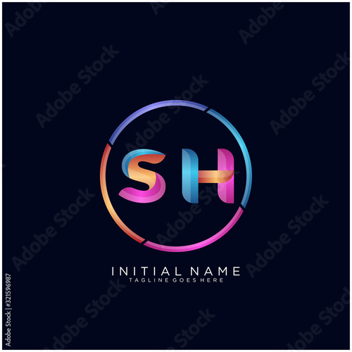 Fototapeta premium Initial letter SH curve rounded logo, gradient vibrant colorful glossy colors...