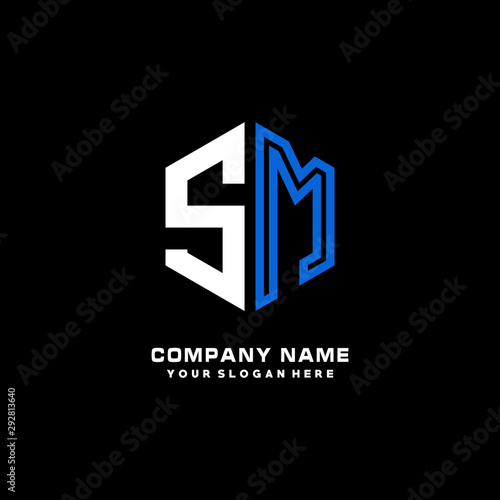 Obraz premium Initial letter SM minimalist line art hexagon shape logo. color blue,white,black background