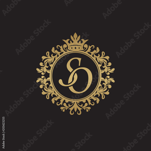 © ariefpro, Fototapeta premium Initial letter SO, overlapping monogram logo, decorative ornament badge, elegant luxury golden color