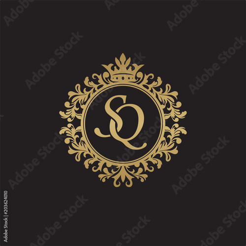 Naklejka premium Initial letter SQ, overlapping monogram logo, decorative ornament badge, elegant luxury golden color