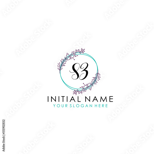 © Rensi, Fototapeta premium Initial letter SZ handwriting with floral frame template