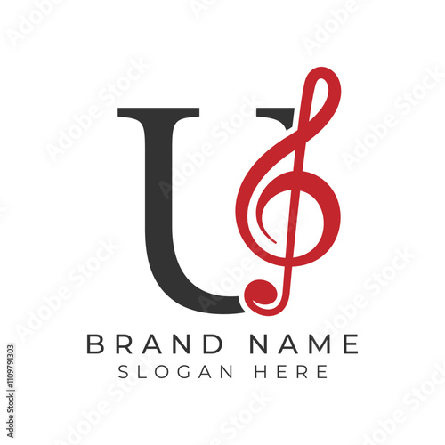 © MuhammadAli, Naklejka premium Initial Letter U with musical note Style icon. Alphabet U Music logo design