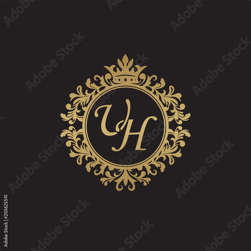 © ariefpro, Fototapeta premium Initial letter UH, overlapping monogram logo, decorative ornament badge, elegant luxury golden color