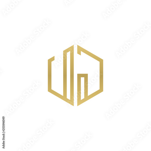 Fototapeta premium Initial letter UJ, minimalist line art hexagon shape logo, gold color