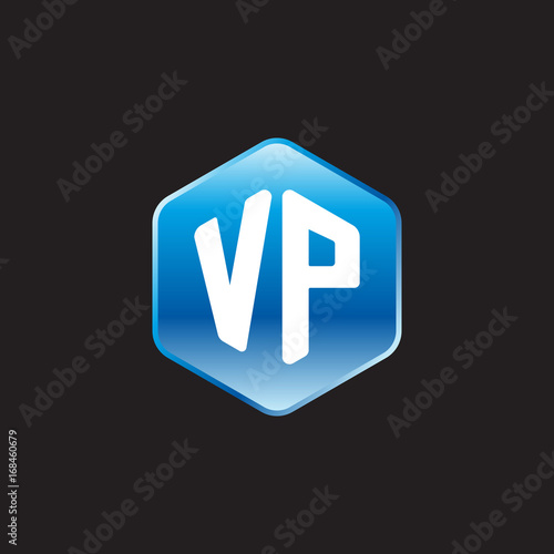 © ariefpro, Fototapeta premium Initial letter VP, modern glossy hexagon logo, gradient blue color on black background