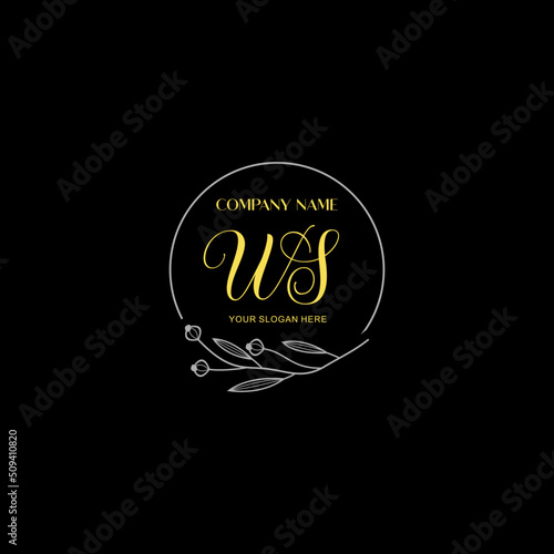 © Rensi, Fototapeta premium Initial letter WS handwriting with floral frame template