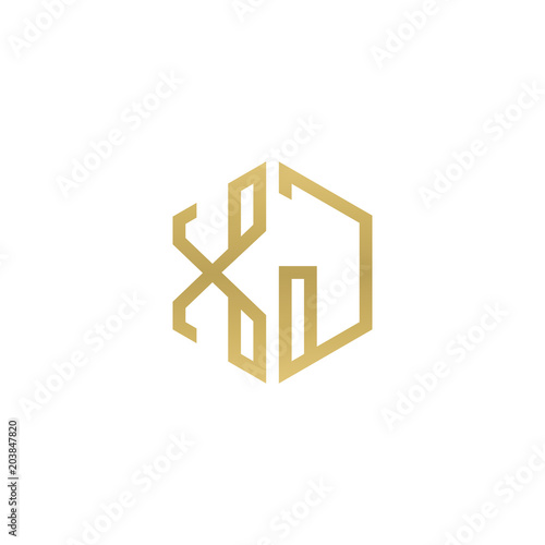 © ariefpro, Fototapeta premium Initial letter XJ, minimalist line art hexagon shape logo, gold color