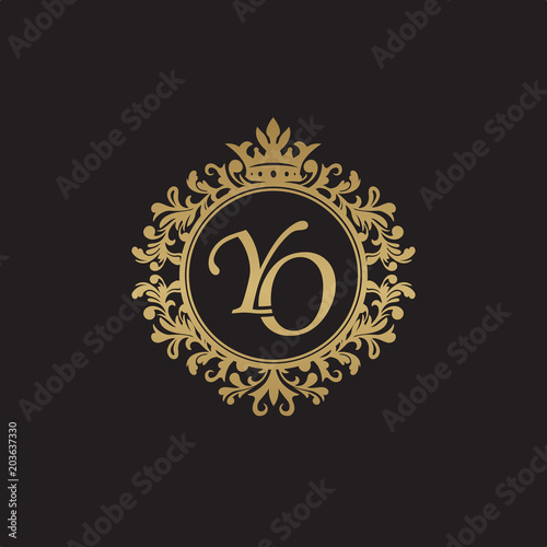 Naklejka premium Initial letter YO, overlapping monogram logo, decorative ornament badge, elegant luxury golden color