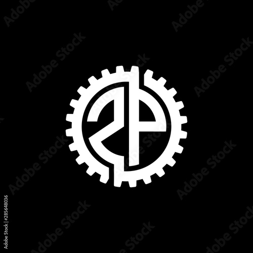 © ariefpro, Fototapeta premium Initial letter Z and P, ZP, interlock cogwheel gear monogram logo, white color on black background