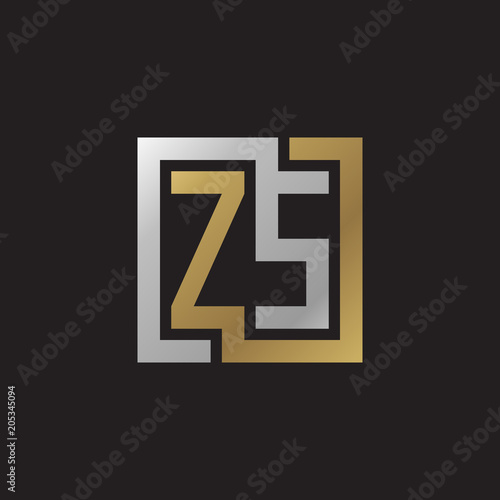 Fototapeta premium Initial letter ZS, looping line, square shape logo, silver gold color on...