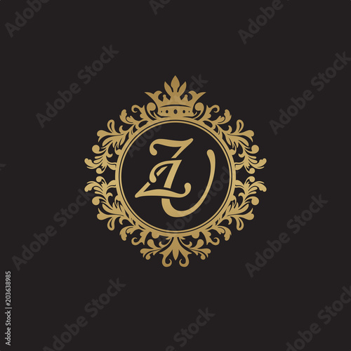 Fototapeta premium Initial letter ZU, overlapping monogram logo, decorative ornament badge, elegant luxury golden color