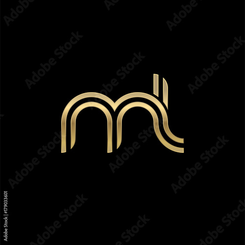 Fototapeta premium Initial lowercase letter ml, linked outline rounded logo, elegant golden...