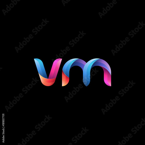Fototapeta premium Initial lowercase letter vm, curve rounded logo, gradient vibrant colorful...