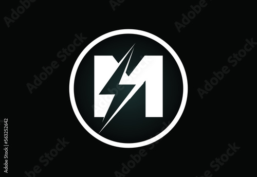 Fototapeta premium Initial M letter logo design with lighting thunder bolt. Electric bolt letter...