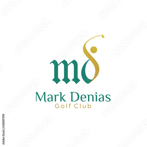© addymawy, Fototapeta premium initial MD golf with golfer icon vector logo design, letter MD concept