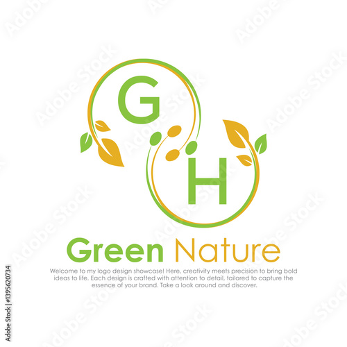 © MdRazibul, Fototapeta premium initial monogram logo for Green nature With circle shape creative design.