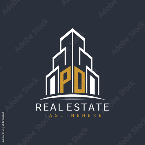 © MdRazibul, Obraz premium initial monogram logo for real estate with building shape creative design