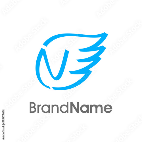 © Snaidjer, Naklejka premium Initial N Ribbon Wing Logo