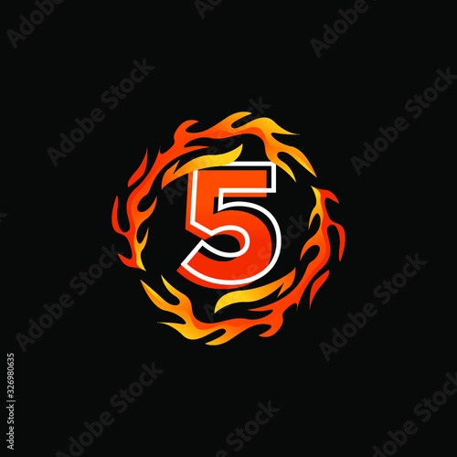 © rieddroid, Obraz premium Initial Number 5 inside Fire Elements