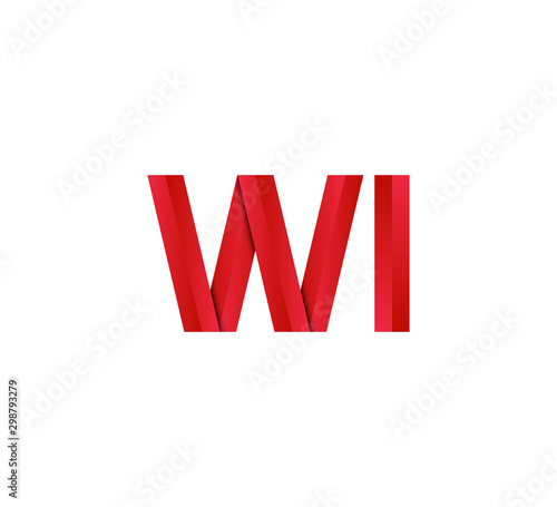 © sudjinah, Fototapeta premium Initial two letter red 3D logo vector WI
