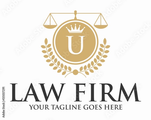 © creator, Fototapeta premium INITIAL U LAW FIRM WITH CROWN AND CREST LOGO TEMPLATE