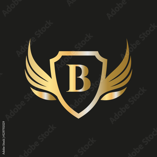 Obraz premium Initial Wing Logo On Letter B Alphabet For Transportation Logo Symbol