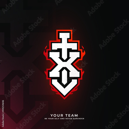 Obraz premium Initial X logo design with sword, Logo for game, esport, initial gaming,...