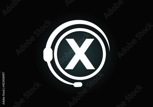 Fototapeta premium Initial X monogram letter alphabet and support service with headphones....