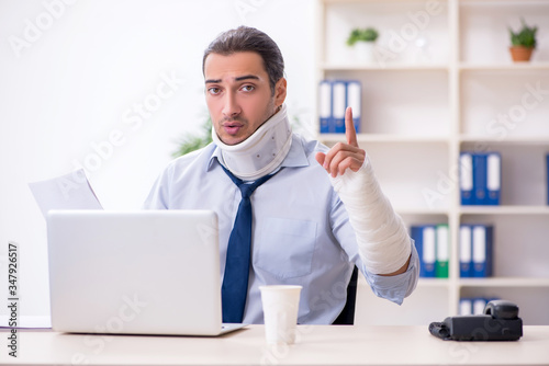 Obraz premium Injured male employee at workplace after accident