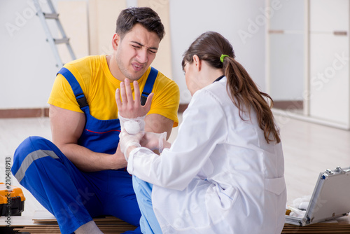 © Elnur, Obraz premium Injured worker being assisted by doctor