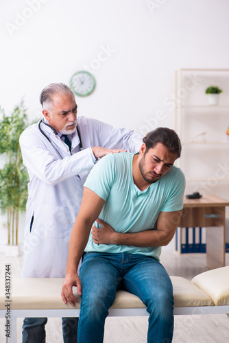 Obraz premium Injured young man visiting old doctor