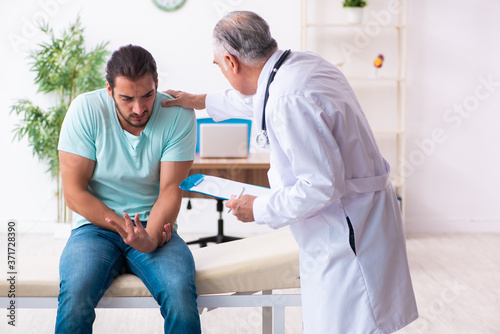 Obraz premium Injured young man visiting old doctor