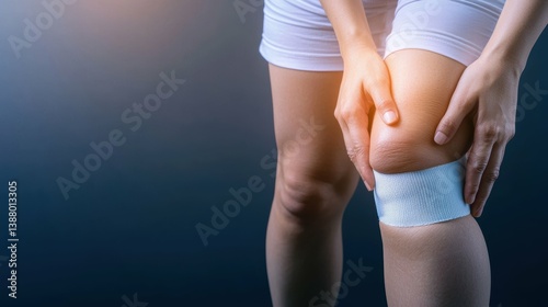 © NAD SANG PAP, Fototapeta premium Injury recovery woman with knee brace home setting health focus close-up view wellness journey