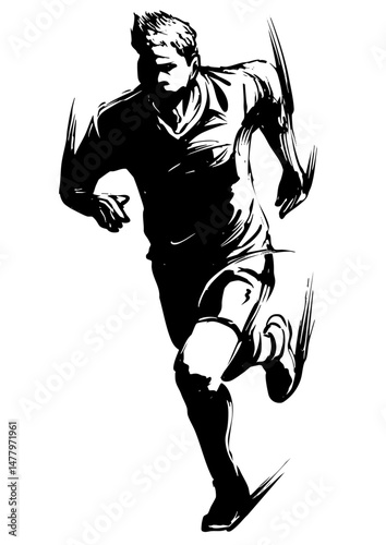 Fototapeta premium Ink Brush Illustration of a Soccer Player Running in Action