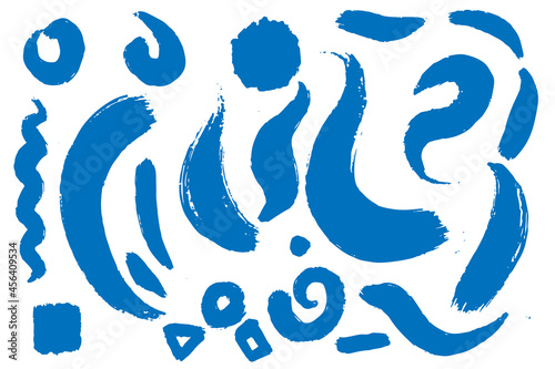 © Olesia, Fototapeta premium Ink curved stains, stripes, brush strokes vector set. Grunge graphic elements for card, banner design isolated on white background.