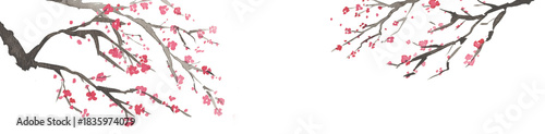 Obraz premium 墨絵の梅 Ink painting header frame High quality-300dpi-