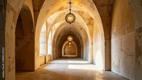 © yk, Fototapeta premium Ink retro architectural corridor art presentation