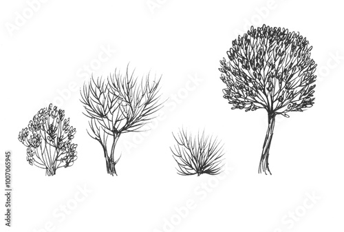 © Dana, Naklejka premium Ink sketch of spring trees on white background