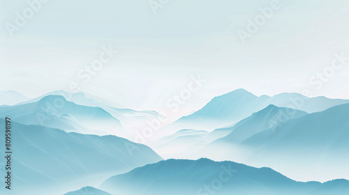 © lin, Fototapeta premium Ink style landscape painting in blue tones, ink style landscape painting concept illustration
