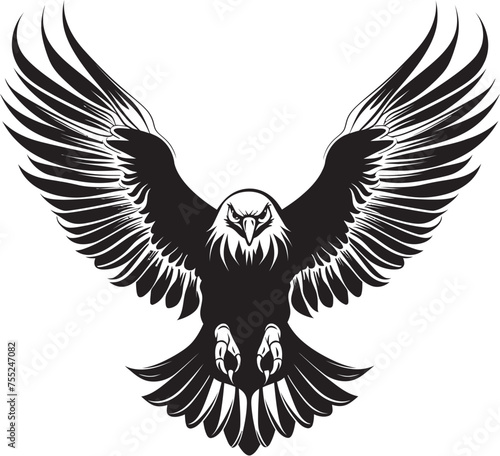 Obraz premium Inked Aviary Eagle Tattoo Vector Icon with Skull Wing Span Seafaring Emblem...