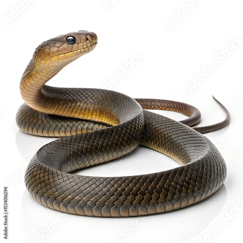 © Ferhaoui Ali, Fototapeta premium Inland Taipan – Coiled Snake on Pure White Background with Detailed Scales