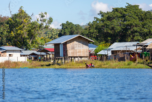 © kenan, Naklejka premium Inle Lake and houseboats, Myanmar, Burma