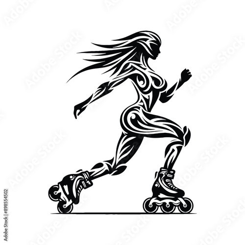 Fototapeta premium Inline Skating female player in ethnic tribal pattern illustration, emblem...