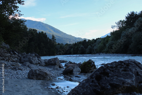 © Lionel, Obraz premium Innbrück an der Inn, Berge und Fluss