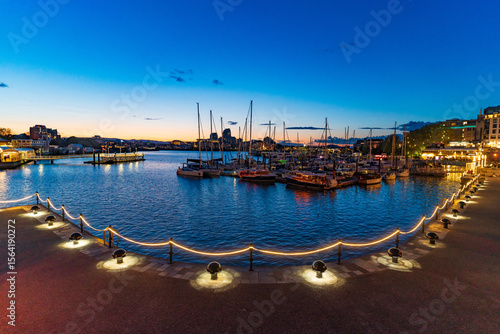 Fototapeta premium Inner Harbour with boats at evening in Victoria, Canada