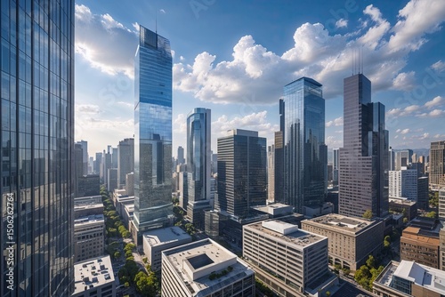Fototapeta premium Innovative Business Architecture in Urban Skyscrapers and Dynamic City Workplaces
