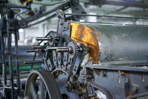 © nordroden, Fototapeta premium Innovative carding machine mechanism at work in a textile factory, showcasing the intricate engineering and design