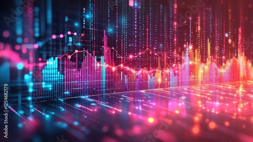 © jakapong, Obraz premium Innovative data visualization of financial trends in a tech-driven world