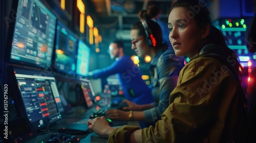 Obraz premium Innovative developers collaborate on an ai driven application in a dynamic...