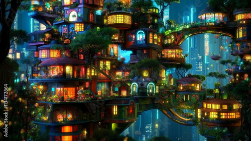 Fototapeta premium Innovative digital payments event showcasing fintech solutions for financial inclusion in a futuristic cityscape